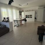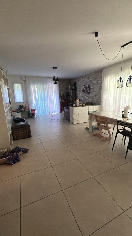 L’immobile è composto da ingresso, ampio soggiorno open space con cucina a vista e doppio accesso al giardino di pertinenza, due camere da letto, doppi servizi e ripostiglio e garage doppio al piano interrato.